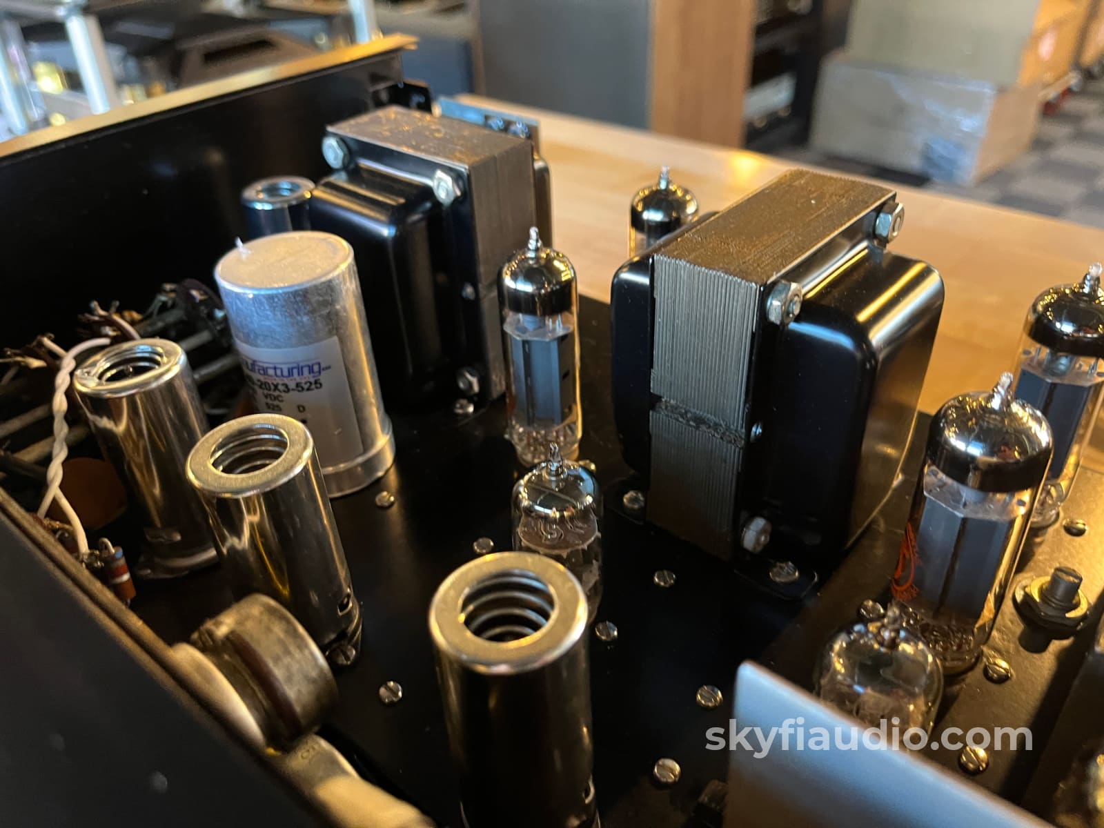 We start with a visual inspection of all internal components to make sure that there are no signs of heat stress or damage. Capacitors are checked for telltale signs of predictive failure including bulging, shrunken wrappers, or physical leakage. We also inspect resistors and other passive components for signs of overheating. If tube arcing has occurred in the past we can usually spot discoloration on the output tube sockets. On vintage units we often spot check select capacitors for value and ESR.