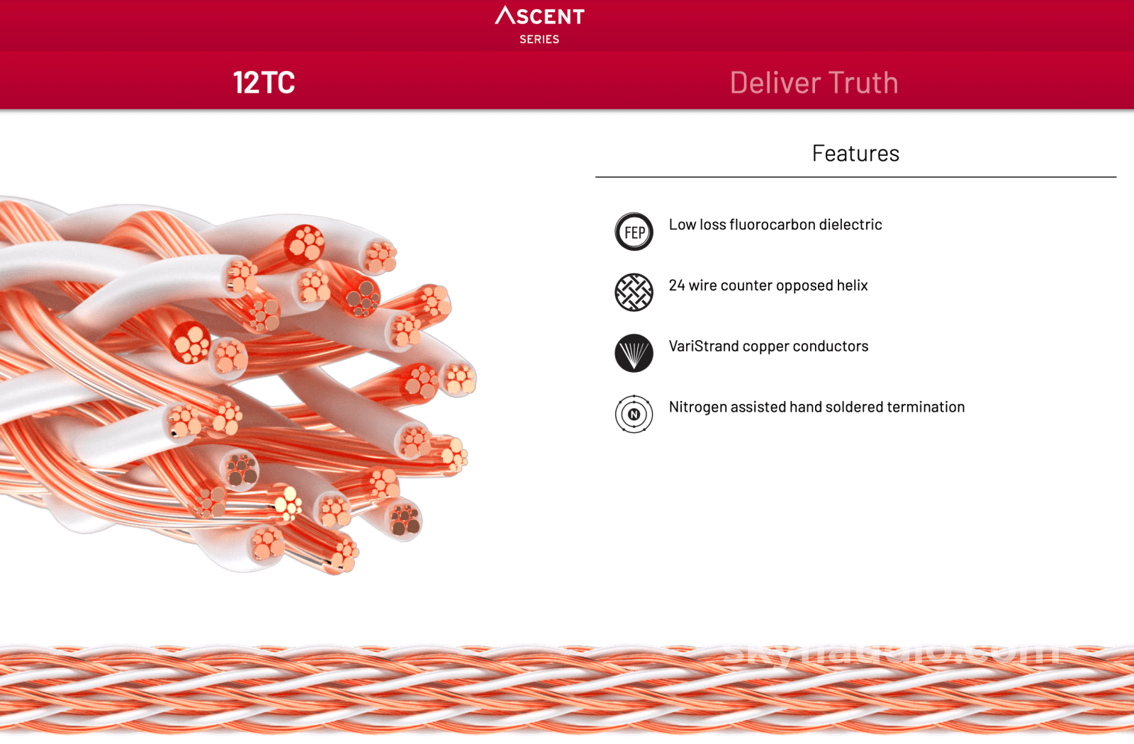 24 strands of 19.5 AWG OFE (oxygen free electrolytic) copper with industry leading conductivity. (102% IACS).