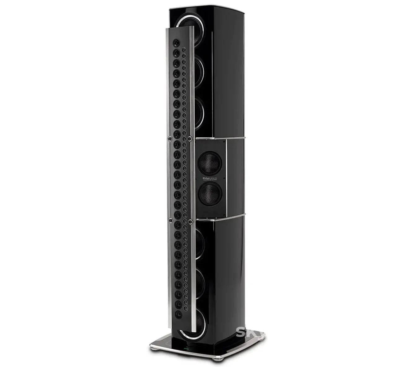 A 4-way speaker, the XRT2.1K produces excellent sound quality at all levels of the human audio spectrum. The unique left and right speaker each use a total of 81 drivers consisting of (6) 8” woofers, (2) 6.5” low frequency midranges, (28) 2” upper frequency midranges and (45) ¾” tweeters, to deliver a nearly unparalleled sound reproduction. The woofer and low frequency midrange drivers, housed in the large bass enclosure cabinet, are brand new designs that were specifically created for the XRT2.1K. Their extremely stiff yet lightweight diaphragms combined with a very long throw design ensures amazing extension on low frequencies. Located on the line array are the Aluminum–Magnesium upper frequency midrange and tweeter metal drivers, which have been specially customized for the XRT2.1K and feature neodymium magnets.