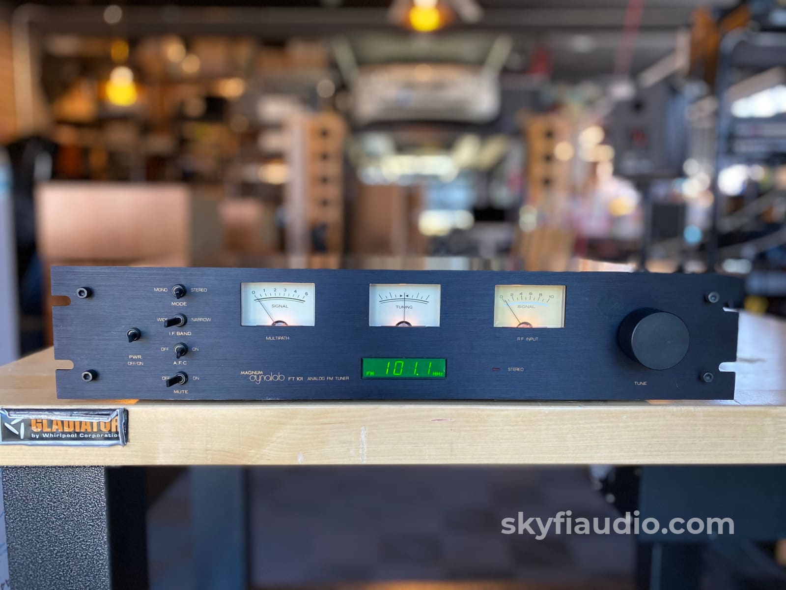 It features three backlit analog meters to help you manually tune the station which also makes it look super cool . The three meters read Multipath Interference, Tuning, and RF Input.