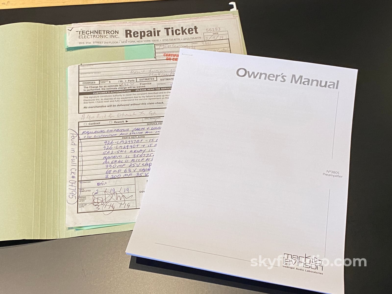 This preamp was serviced by Technetron Electronics in Manhattan in 2019. They replaced a handful of chips and power supply parts along with a large quantity of electrolytic capacitors. This 380s passed all of our bench testing with very good results.