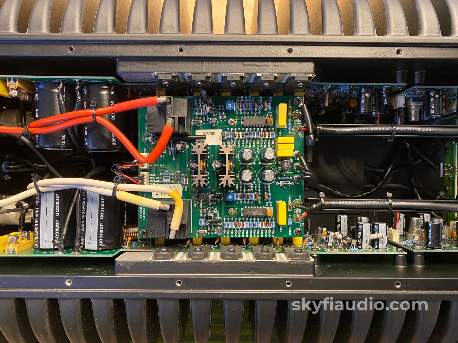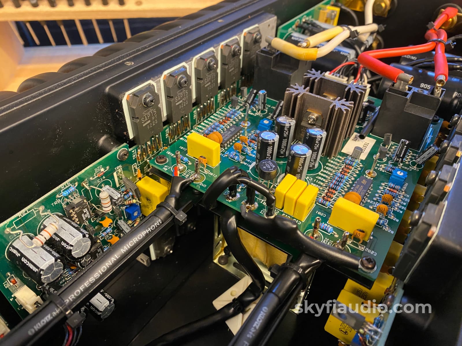 We start with a visual inspection of all internal components to make sure that there are no signs of heat stress or damage. Capacitors are checked for telltale signs of predictive failure including bulging, shrunken wrappers, or physical leakage. We also inspect the PCBs for discoloration from resistors or transistors that may have been running hot. On vintage units we often spot check select capacitors for value and ESR.