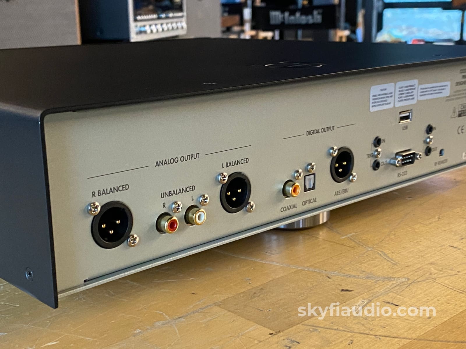 Analog outputs: 1 pair unbalanced (RCA), 1 pair balanced (XLR). Digital outputs: 75 ohm S/PDIF (RCA), 110 ohm AES/EBU (XLR), optical (TosLink). Inputs: USB, RS-232, IR input (3.5mm), trigger in/out (3.5mm).