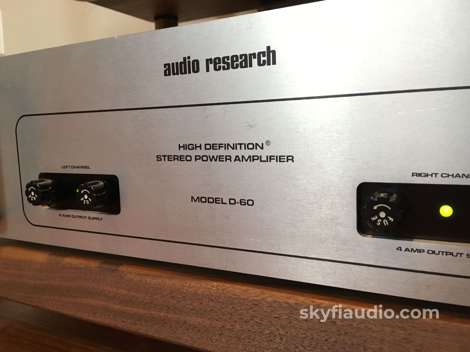 Power output 60 watts per channel minimum RMS (both channels operating) at 8 ohms from 1 Hz to 20 kHz with less than .25% total harmonic distortion. Typically less than .02% at rated power in midband. Approximate actual power available at "clipping" (both channels operating) 150 watts (4 ohms), 75 watts (8 ohms).
