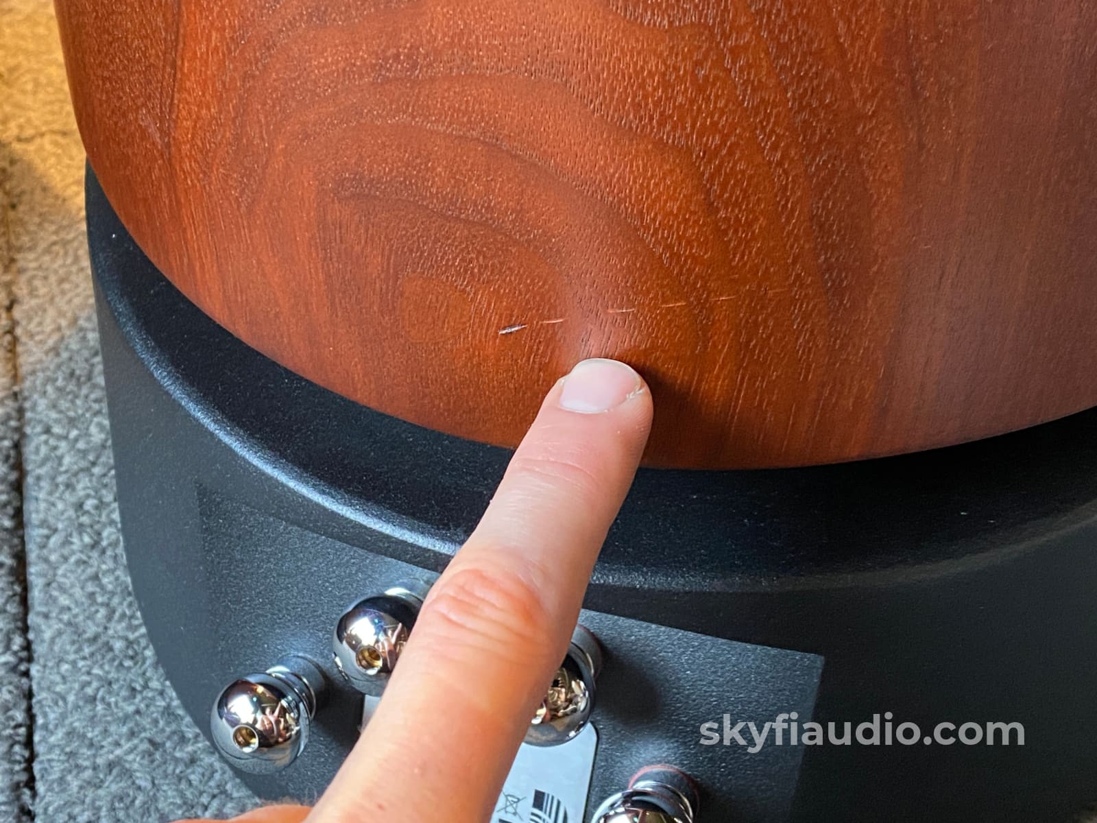 Two 8" woofers with Rohacell diaphragms complete the driver array. Rohacell is a lightweight sandwich of rigid foam between sheets of carbon fiber.