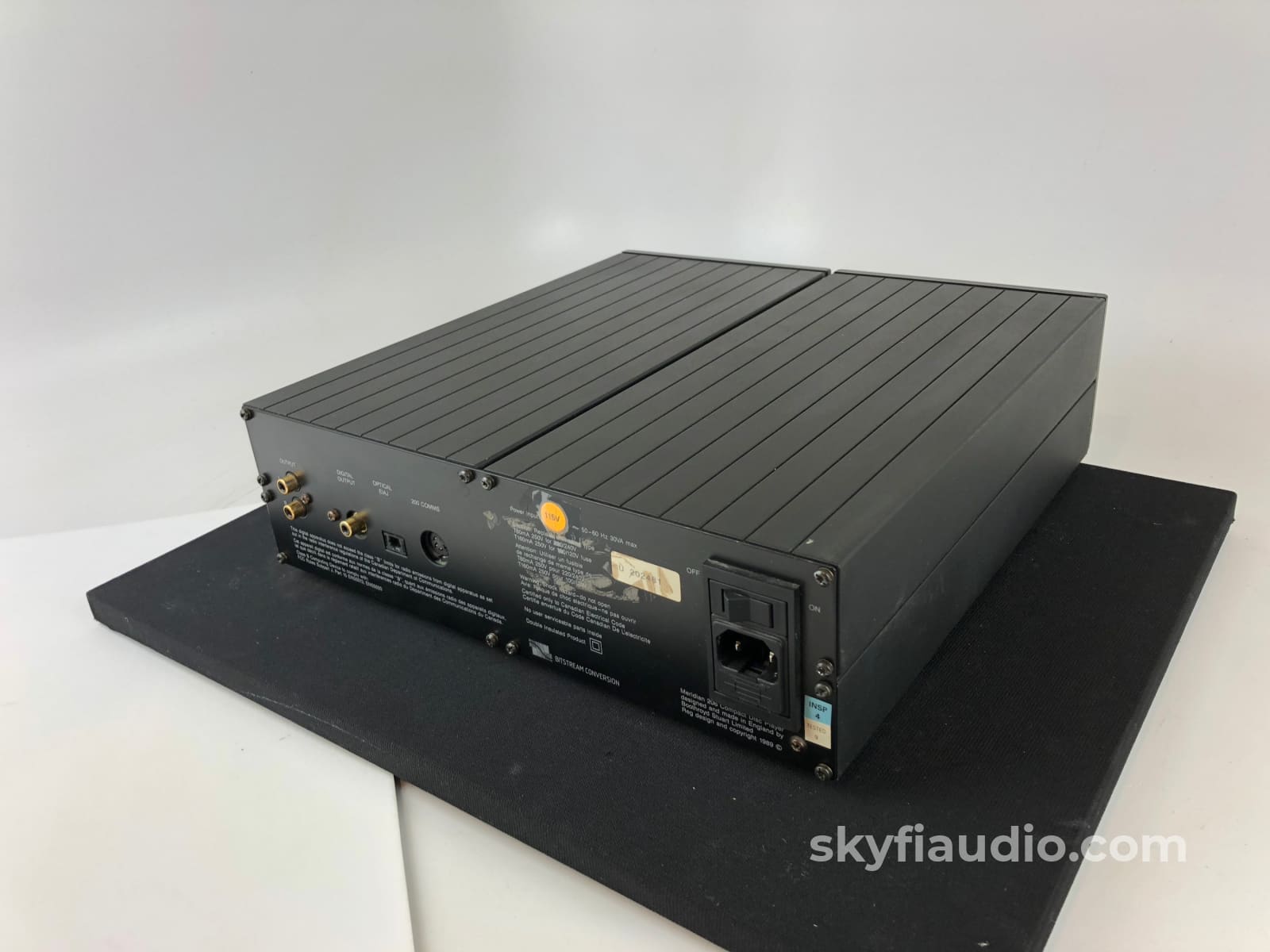 The drawer assembly is unique in that the whole CD transport mechanism is moved in and out along with the drawer itself. This marries the mechanical advantages of a top-loading system with the convenience of a front-loading one. The transport mechanism is further isolated from the drawer with Sorbothane supports.