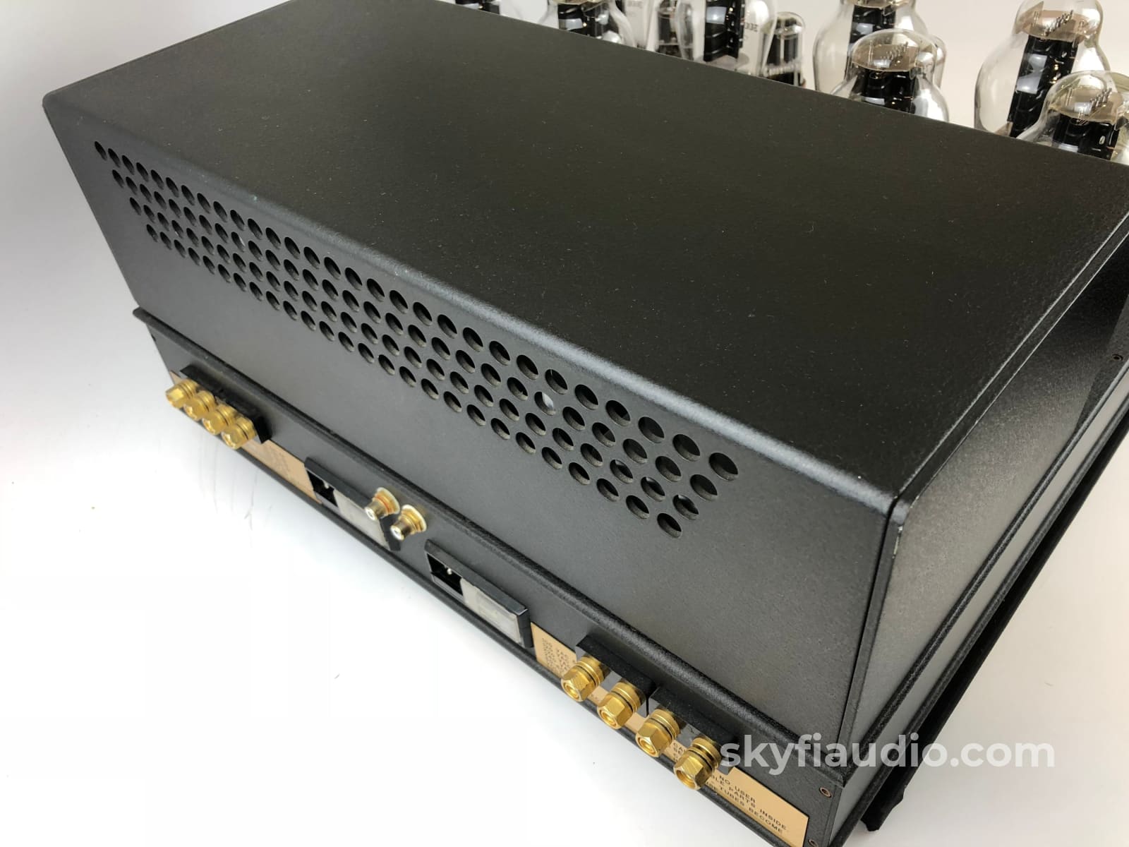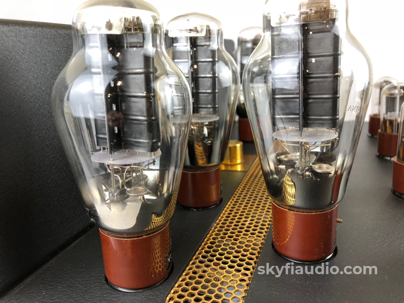This beautiful and unique "Dual Mono, Zero Feedback, All Triode" tube power amplifier comes with a set of brand new tubes, fully tested and working perfectly. A spare set of used tubes is also included.