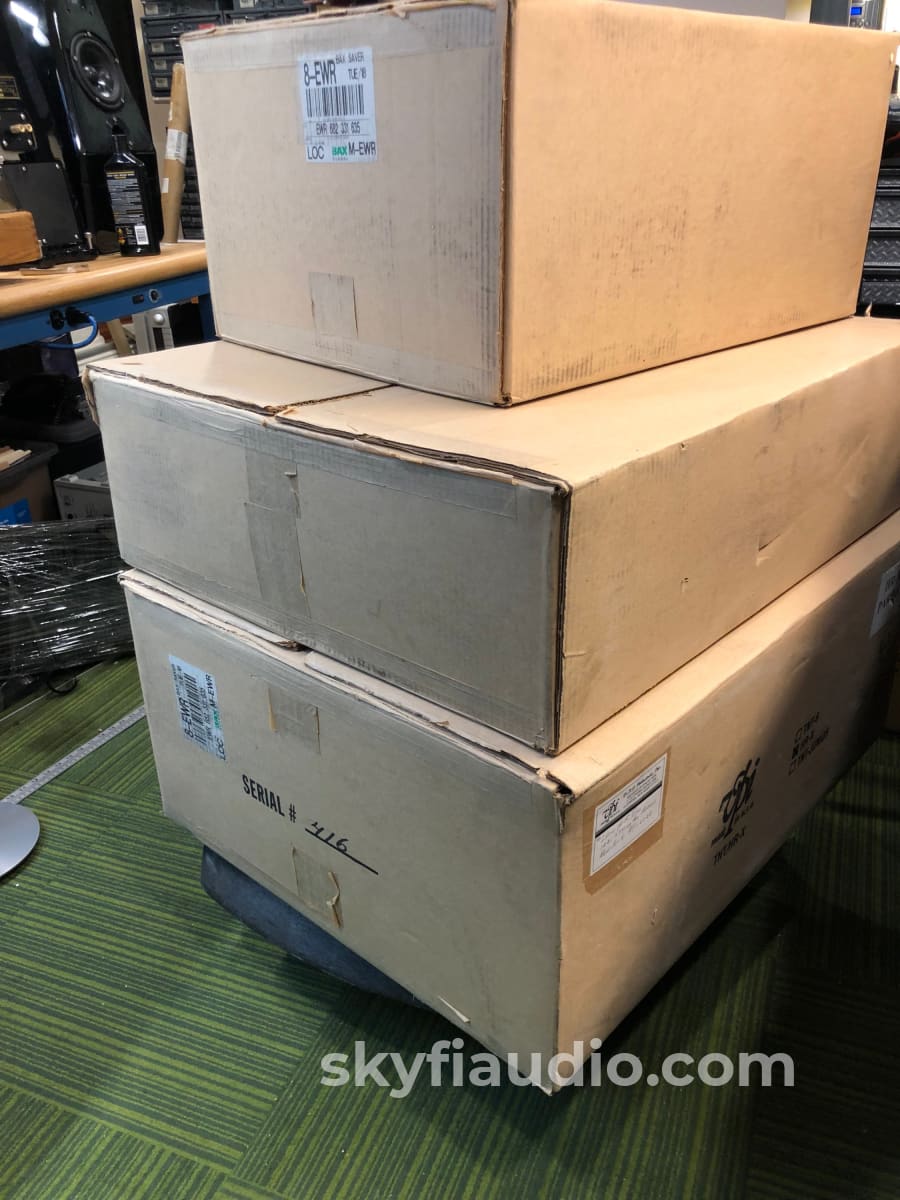 - Triple-laminated chassis (Acrylic-Aluminum-Acrylic) is heavy, rigid, and critically damped. Each layer is machined separately and then assembled before being combined with the corner assemblies to produce a uniformly aligned system.
